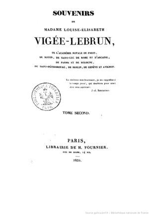 1. Élisabeth Louise Vigée Le Brun, Souvenirs 1755-1842 (Bibliothèque des correspondances, mémoires et journaux), texte établi, présenté et annoté par Geneviève Haroche-Bouzinac, Paris, Honoré Champion Éditeur, Paris, 2008, 852 pp.
