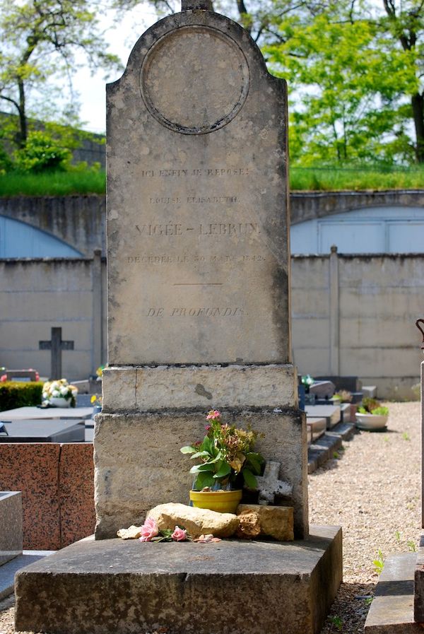de sépulture aristocratique, mais celui-ci sera détruit lors de la révolution de 1830. Au mois d’août 1835, Mme Vigée Le Brun qui a maintenant 80 ans et de sérieux ennuis de santé commence à s’inquiéter d’une nouvelle sépulture. Elle écrit au maire de Louveciennes : « Ayant toujours eu pour Louveciennes une véritable prédilection je désire, n’importe où je viendrais à mourir, que mes restes soient déposées dans une fosse