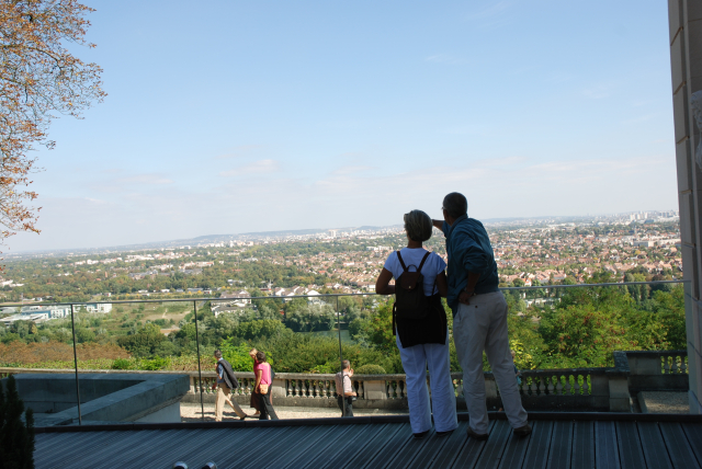 Ils faisaient une halte en admirant la vue sur la Seine et sur Paris sous le pavillon de musique de Madame du Barry.