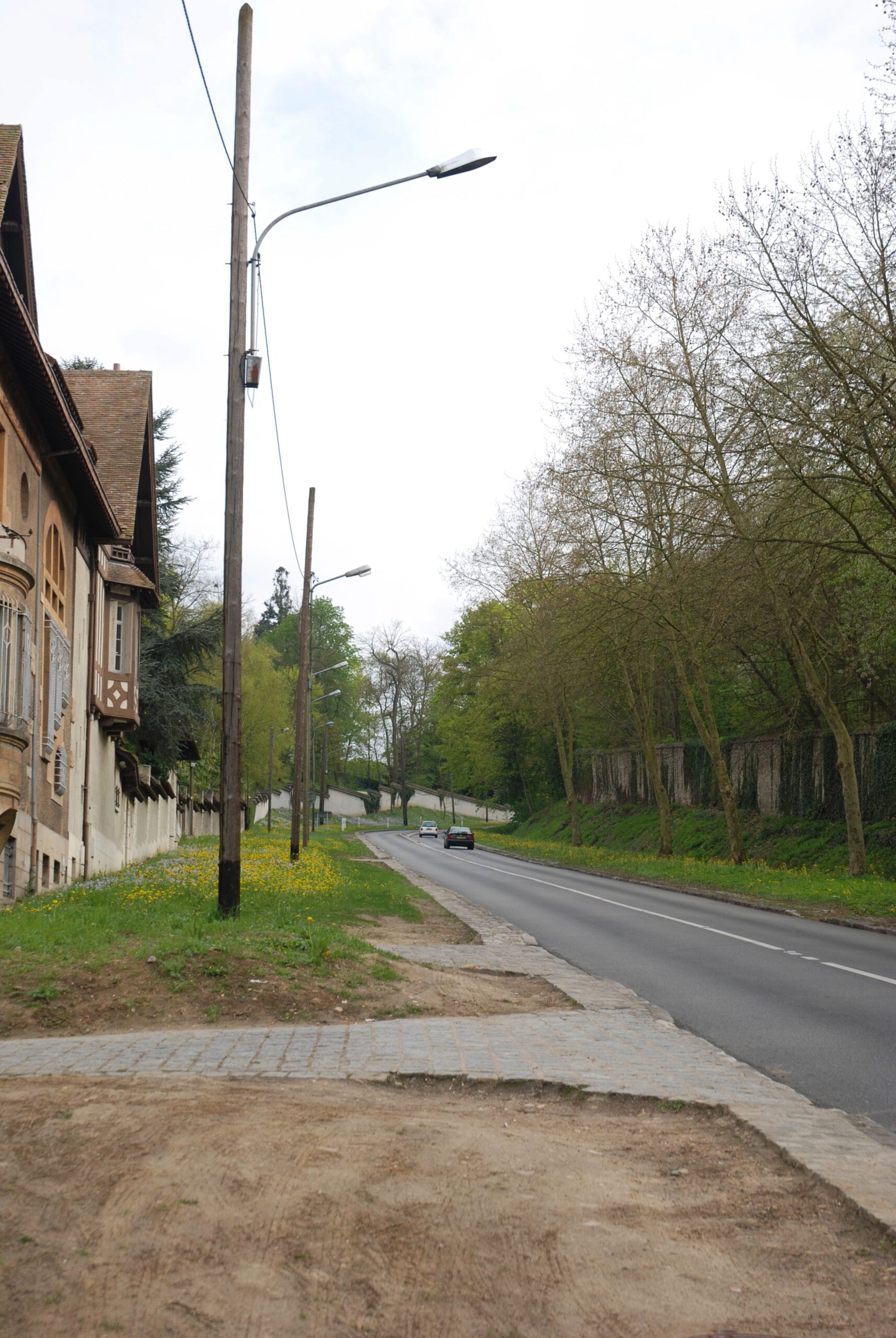 Pour terminer, nous signalerons le bel aménagement prévu le long de la RD 386 (Côte du Cœur Volant) entre la place de l’abreuvoir et la RN 186. Il s’agit d’un cheminement piétonnier, en béton désactivé, long de 499 mètres, d’une largeur de 1,40 m et éclairé par 36 candélabres. Cet investissement sera payé par le Département des Yvelines, les coûts d’entretien et d’éclairage annuels incombant à la commune. Le programme sera réalisé dans le cadre des « circulations douces » (là on exagère un peu car la pente est rude).