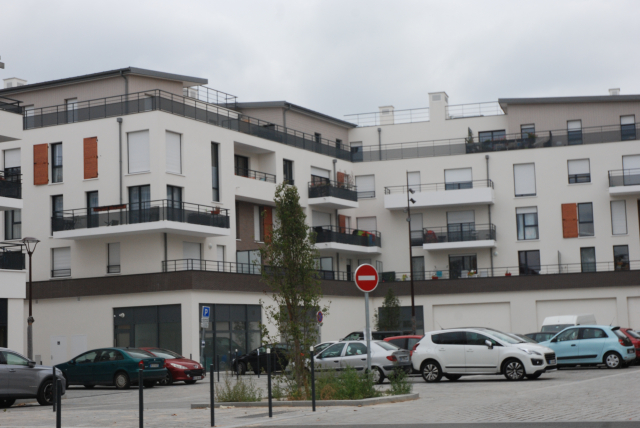 Les immeubles collectifs (sociaux et accession) sont d’une facture classique dans le style de l’époque. Conçu comme un éco-quartier on est cependant surpris par l’encombrement du parking public (un dimanche après-midi jour de fermeture du magasin Bio). L’insuffisance des emplacements se fait d’ailleurs sentir, on est pas encore passé au vélo ou à la trottinette électriques.