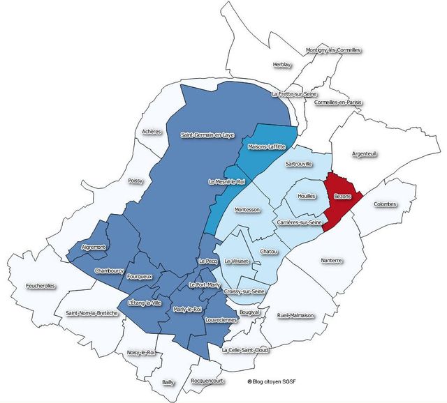 * Communauté d’agglomération de « la Boucle de la Seine » (7 communes, 173.645 habitants) > Sartrouville, Houilles, Chatou, Le Vésinet, Montesson, Croissy-sur-Seine, Carrières-sur-Seine > Président : Pierre Fond, maire de Sartrouville.