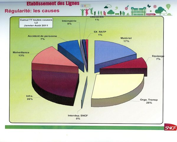 Pour prolonger ces statistiques et les illustrer, nous avons relevé les incidents ont émaillé et perturbé au cours des premiers mois de l’année 2012 la circulation des trains se traduisant par des suppressions, des retards…. Le blog de la ligne L en énumère les principaux :